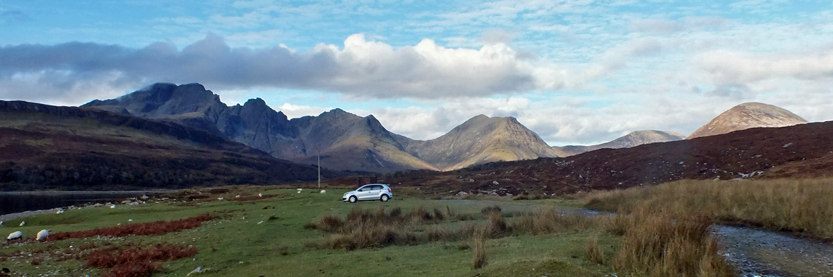 A short way up the B8083, at Kilbride, a spur road branches off to the left. The pavement ends a half mile or so along. I park and continue along