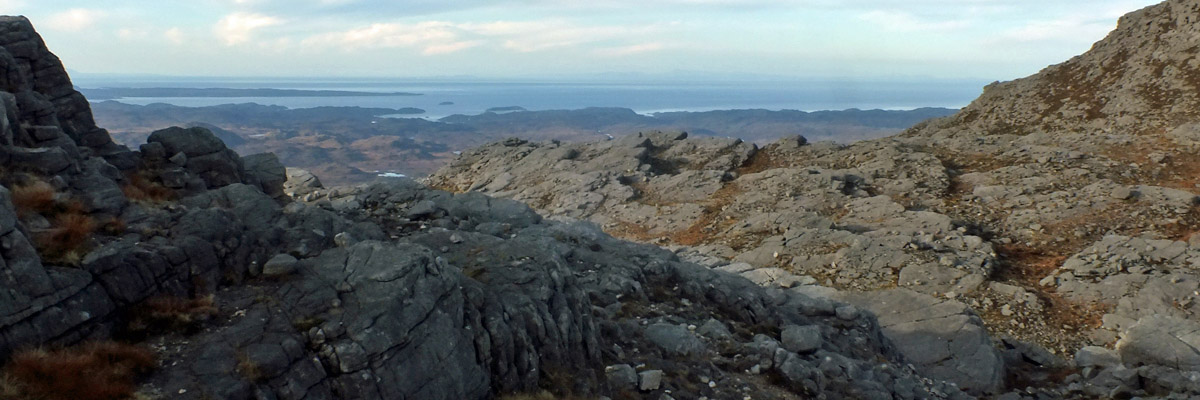 start up the side of Sàil Gharbh. Two hours or so after leaving Spidean Còinich, I'm on the highest summit of Quinag, enjoying the view over Kylesku, far