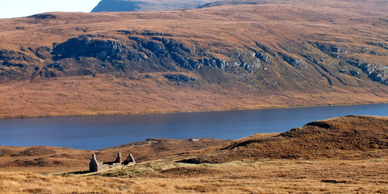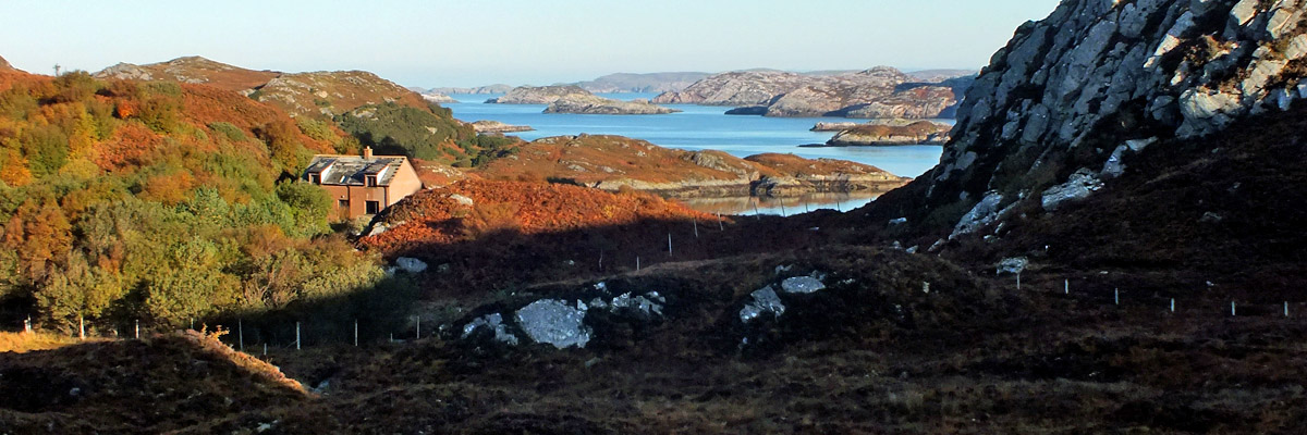 to be rushing through. Cross the Kylesku Bridge and head north. A few miles along, a short spur leads to Badcall; back on the main road, I stop to have