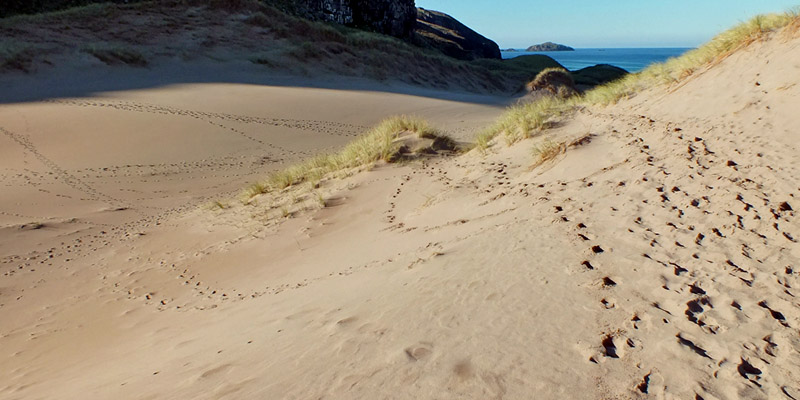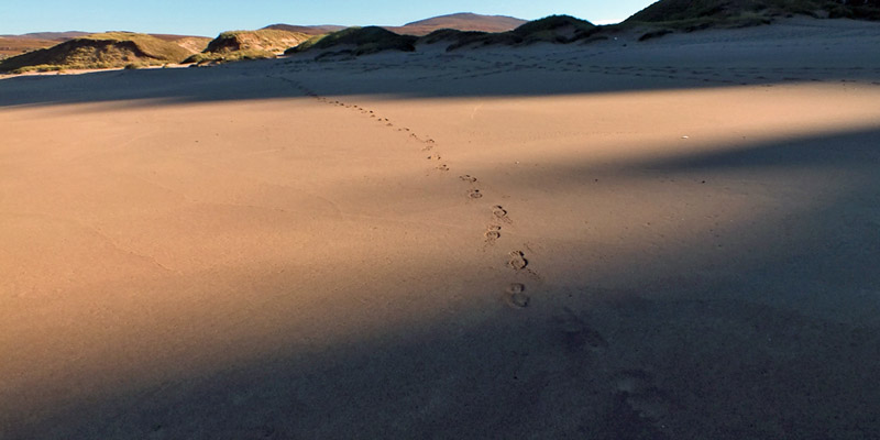 I stroll along the beach and wander in the dunes for two hours. There are lots of footprints around, and occasionally I catch sight of other
