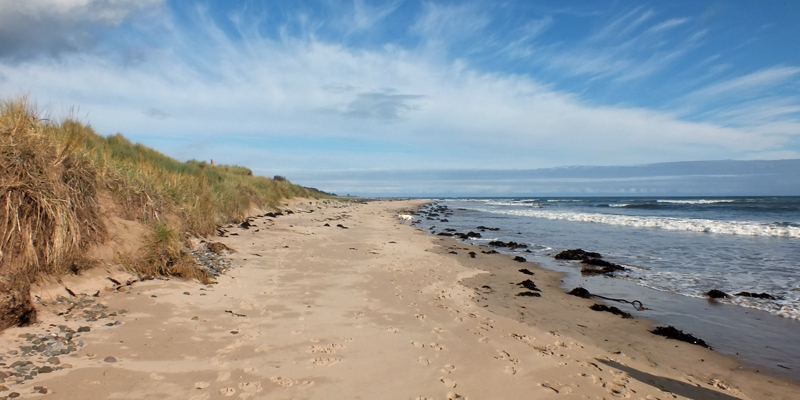 I catch the X18 bus down to Alnmouth and stroll the beach there during a rare