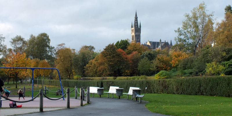 walk through the university and Kelvingrove Park. W then goes on her way. I