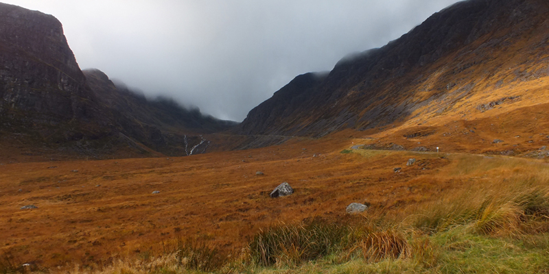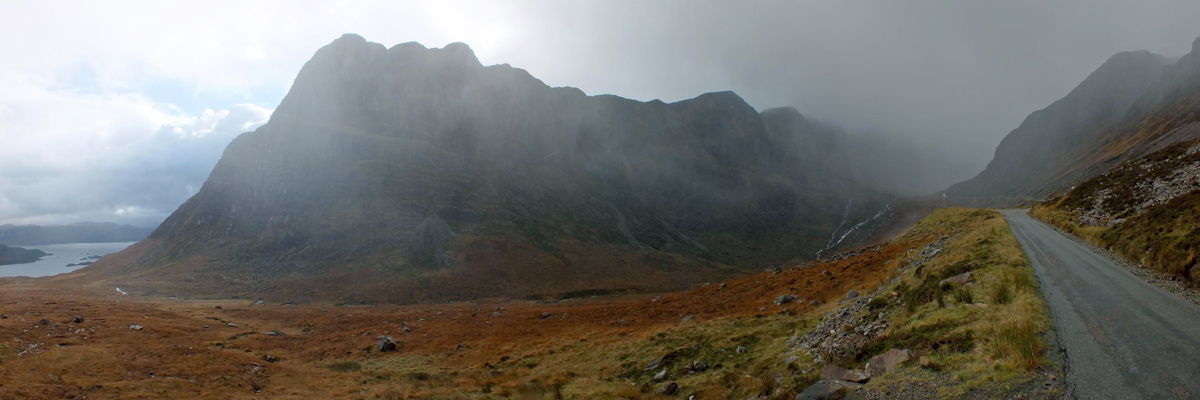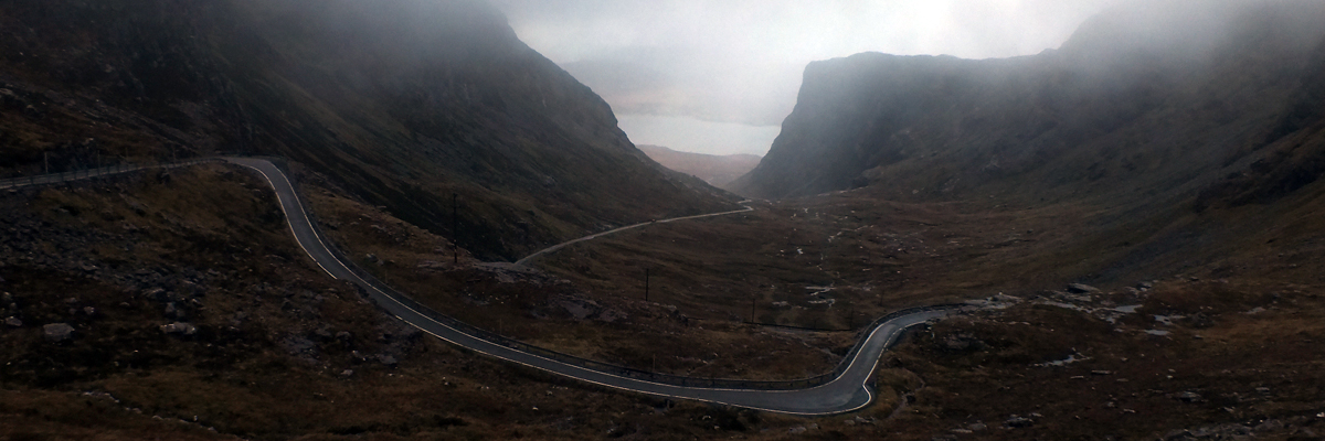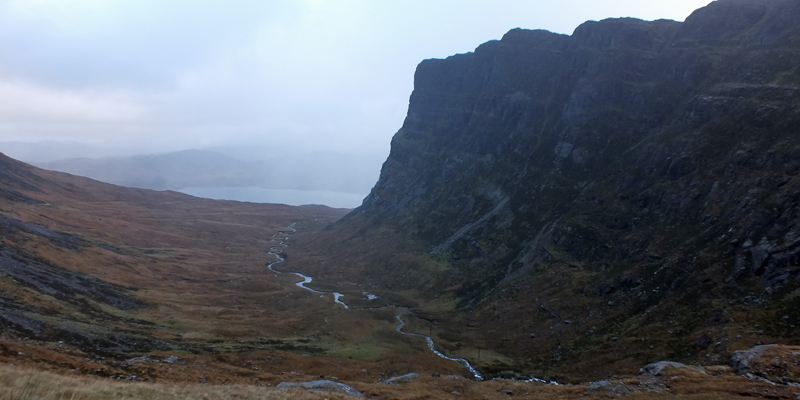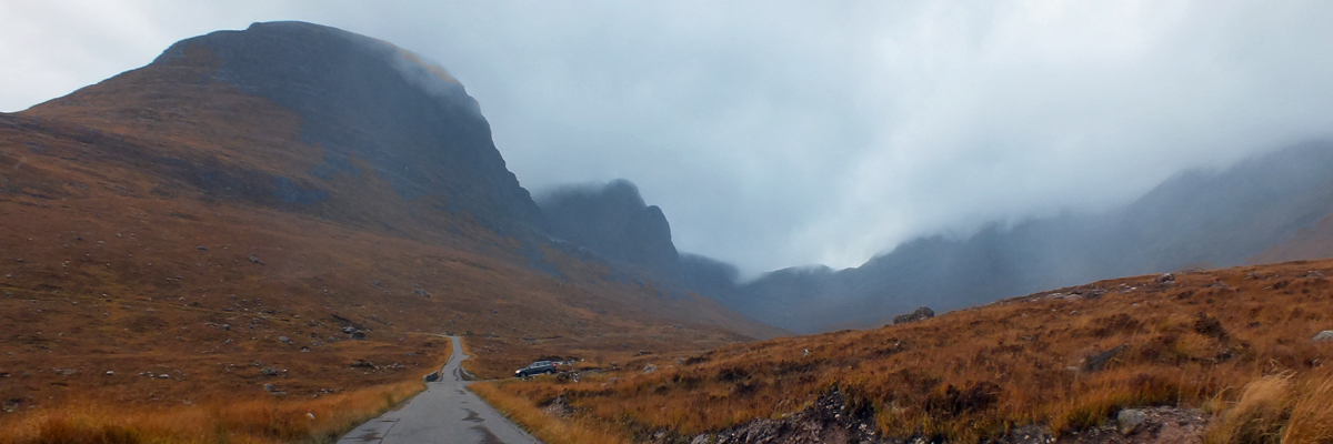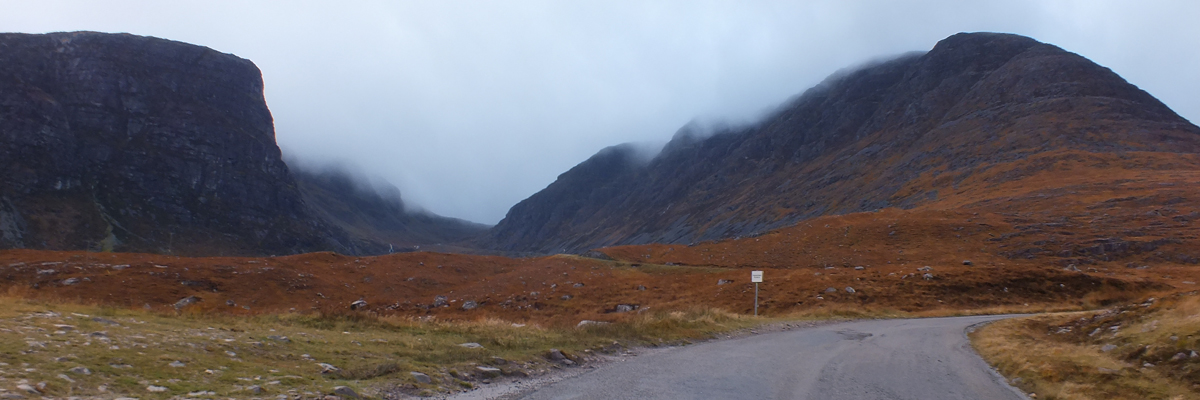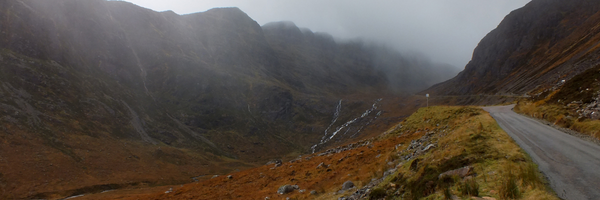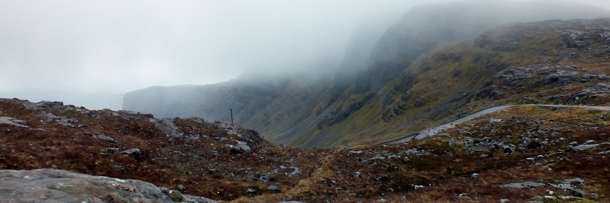 Spar. Then up I go, into the mist. At the top of Bealach Na Bà, I stop and