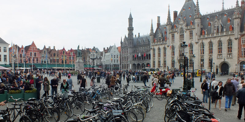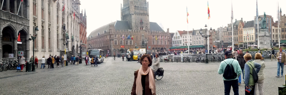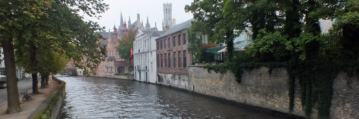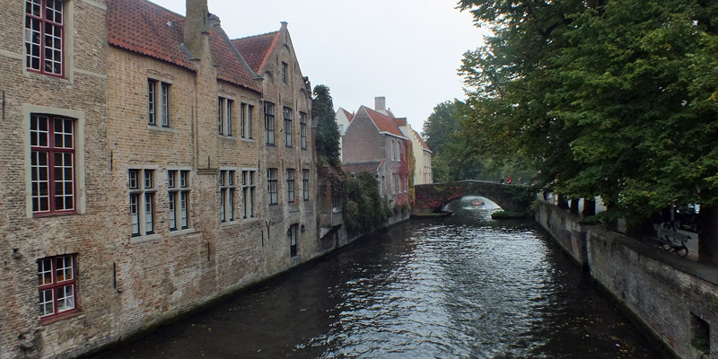 Saturday 27 September 2014--Belgium is a country of two parts: northern, industrial, Dutch-speaking Flanders; and southern, agrarian, French-speaking Wallonia. Bruges is the French name for the Flemish city the locals call Brugge, and for one reason or another (or maybe none), English speakers use the French name. I usually try to adhere to local custom in such things, but "Bruges" is too deeply ingrained. I am, however, well on guard against speaking French, the only language other than English in which I have any proficiency at all. My understanding is that some Flemings will take offense at the presumption that they speak French, and it's better to address them in English. Good thing, I guess, as the town is very popular with British tourists.