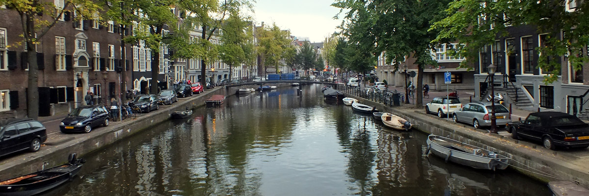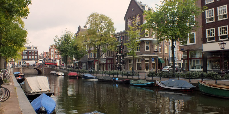 far, so good. I'm out at the crack of noon for coffee and a bagel, and then my usual meandering along the canals. Pass through a neighborhood