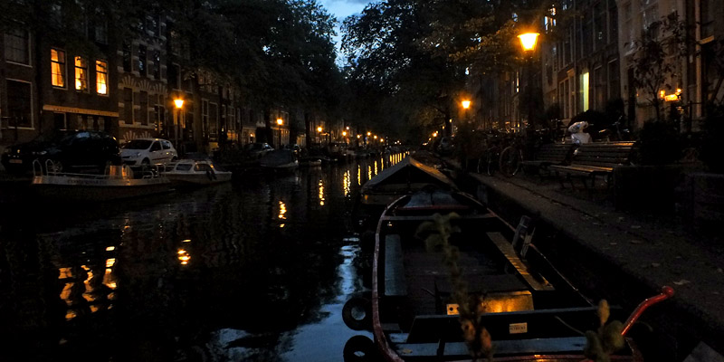 the canal. It's a pleasant evening, and I can't think of a better combination than a La Chouffe, an Amsterdam canal, and a pretty blonde