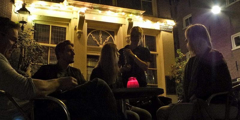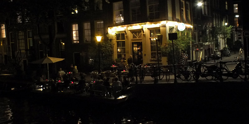 I have dinner al fresco at a place called Winkel, then settle in for a couple of beers on 't Smalle's terrasse, hanging out over