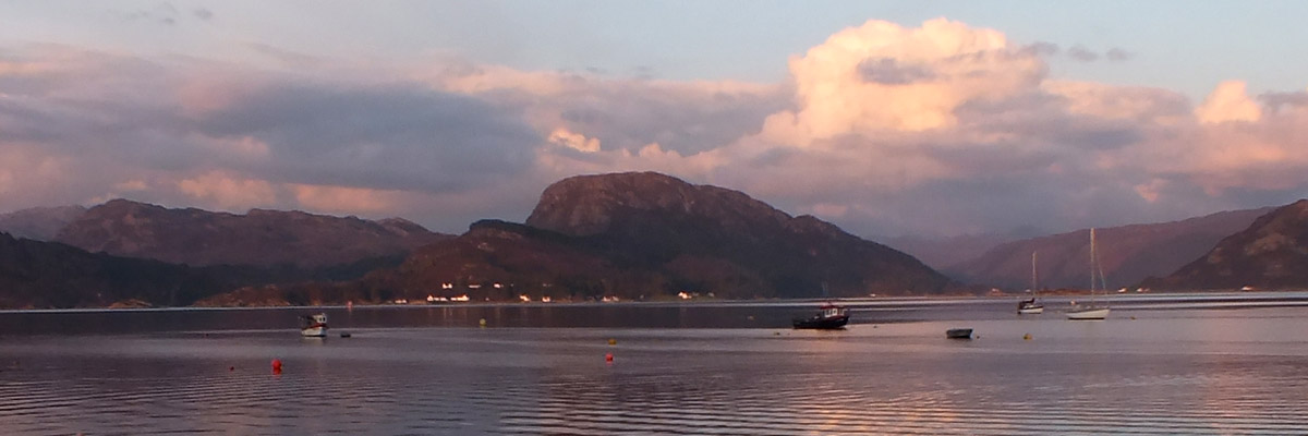 Arrive in Plockton at about 6:00. There's a gorgeous pink glow over the bay. We have dinner at the Plockton Inn and stay for the