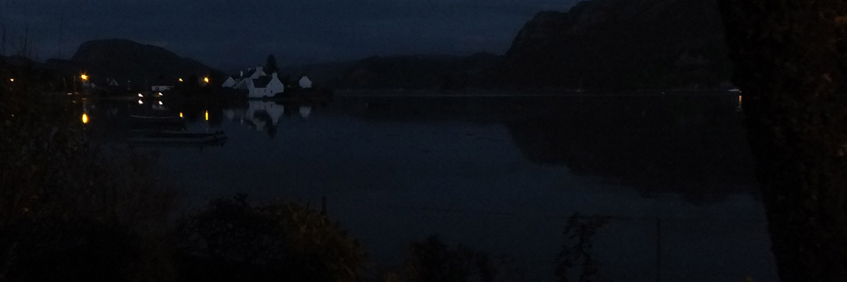 Thursday 9 October 2014--I meet Ron at the airport in Glasgow, and we drive to Gourock to catch the ferry for Dunoon. Crossing the Firth of Clyde here always puts me in a Highland mood. We stop for a walkaround in Inveraray, and the standard Three Sisters photo op in Glen Coe. Pass up a break in Fort William--it isn't raining--and push on through to Plockton.