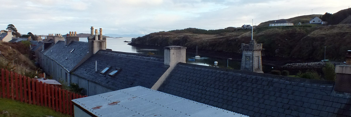 room a few miles south. We check in and return to peruse the town, notably the in-progress Isle of Harris Distillery, and have