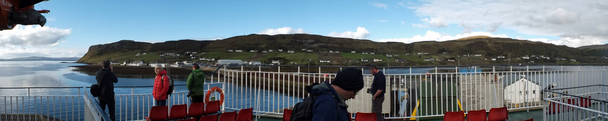 Arrive in Uig and join the queue for the ferry. While we're waiting, I run over to the Isle of Skye Brewery and grab a few