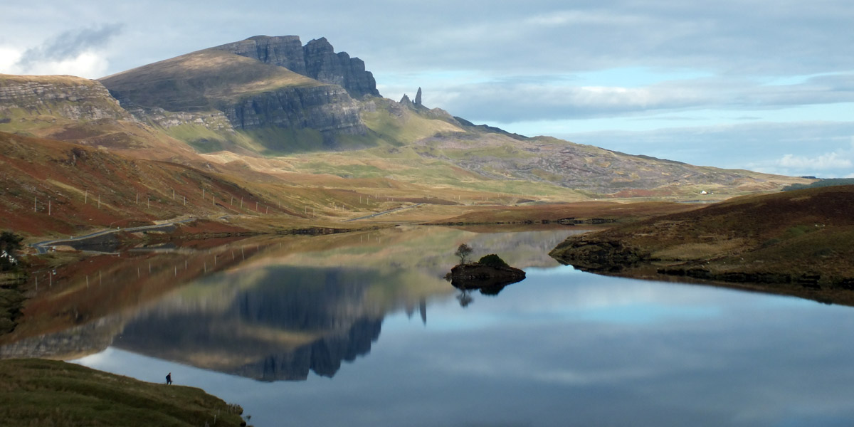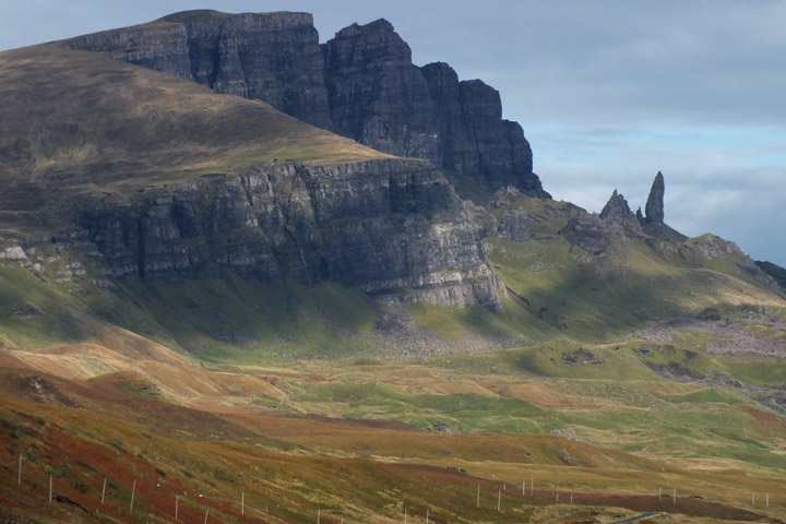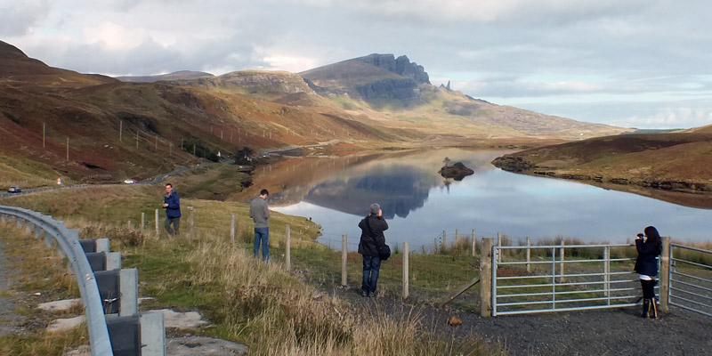 Up the road, we join a handful of other tourists attempting calendar shots of the Old Man of Storr. Then I take Ron up over