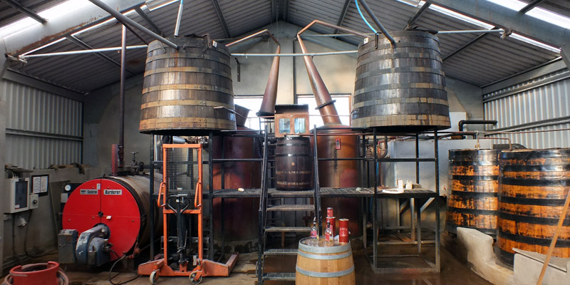 Abhainn Dearg Distillery, which sits just off the road back of the beach. This little DIY-style plant started distilling in 2008, the