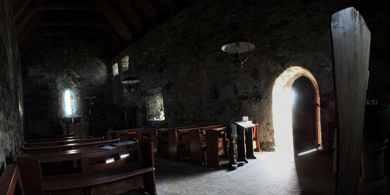 in 1912, using slate from Orkney. It remains without electricity or plumbing. There are peculiar legends about pre-Christian rituals