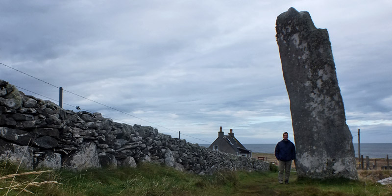 Down across the road, we find Clach an Truiseil, the tallest standing stone in Scotland. It's said to have been part of an
