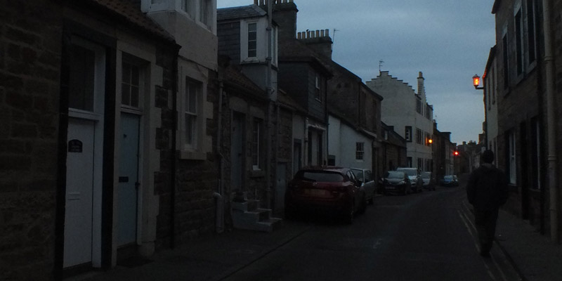 Arrive in Anstruther at 4:00, much too late to take the intended walk. We go as far as Cellardyke, the easternmost part of town,
