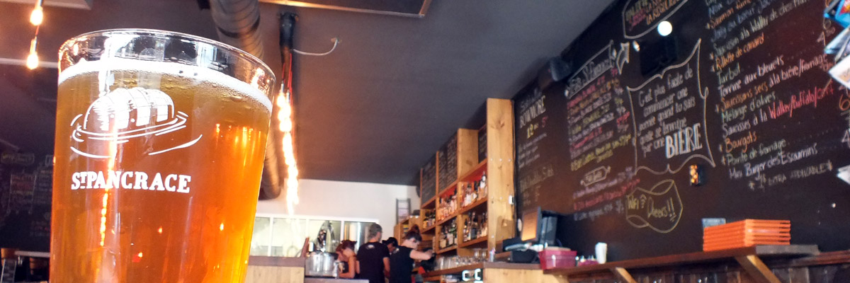 Our first stop is the Microbrasserie St-Pancrace, a handsome pub. Outside