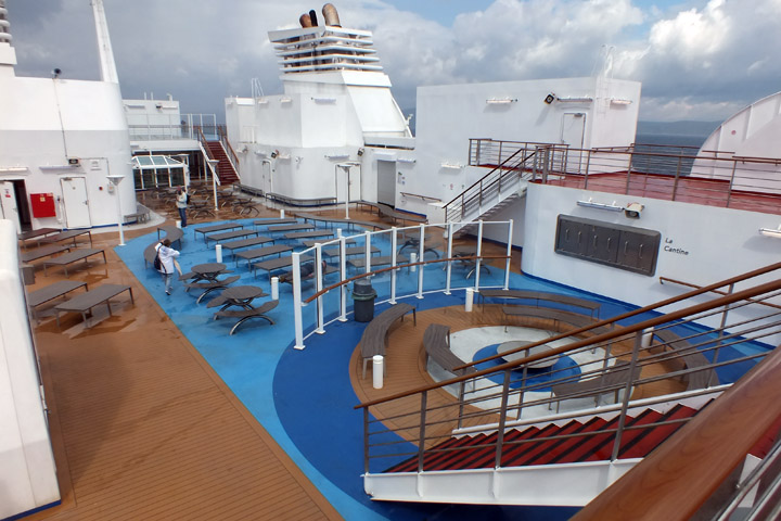 the sundeck. I have it mostly to myself, as it's quite breezy out on the open water.