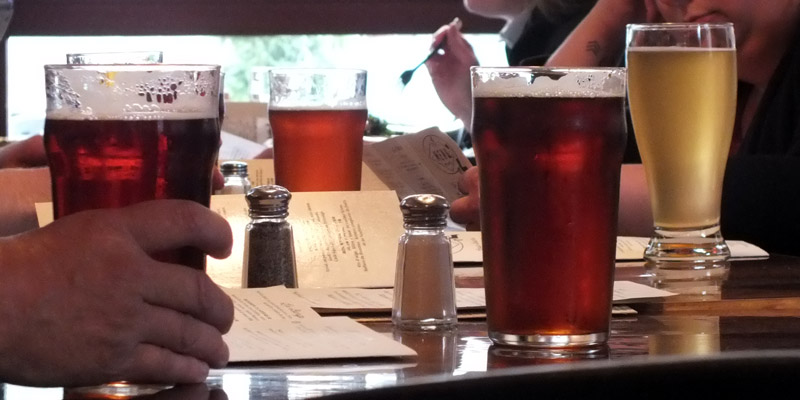 table back at the motel. We're happy enough with a couple of pints.