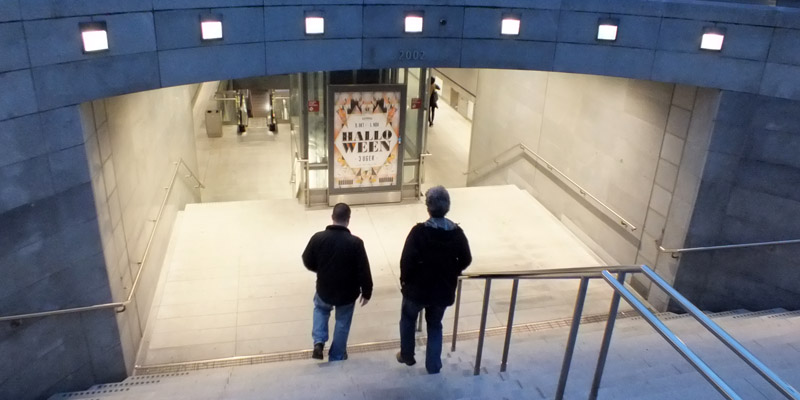 paths alongside. We stroll up to the Metro stop at the Forum, and ride down to