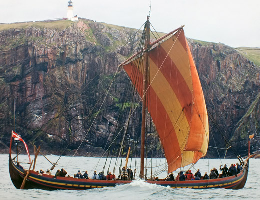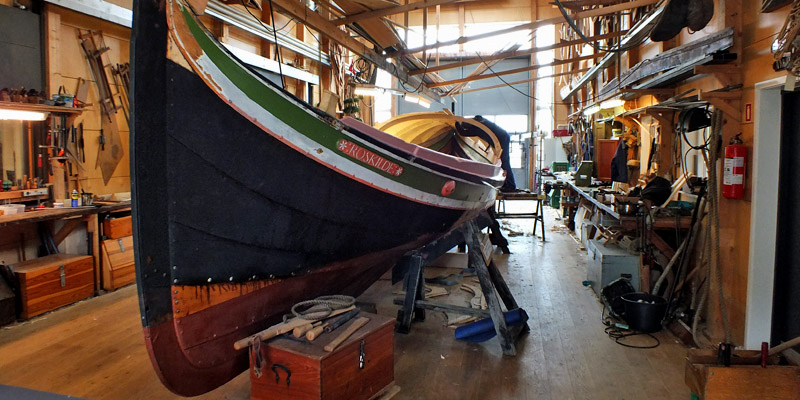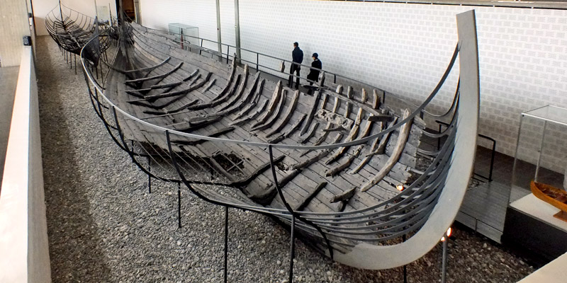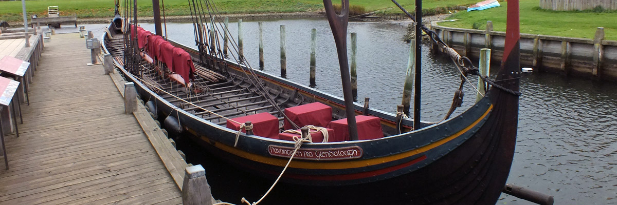 7 October 2015--The Viking Ship Museum in Roskilde, Denmark was established to conserve the remains of five Viking-era sailing vessels that were scuttled in Roskilde's fjord to help regulate the flow of traffic on the approach to the city, which was Denmark's capital before Copenhagen. The museum has since expanded its mission to building replicas of those five vessels and others that illustrate the history of sailing and boat-building in Scandinavia. The original five were built in different places and had various purposes--fishing, trading, raiding. Here is the Sea Stallion From Glendalough, a replica of a Viking longboat, intended for making war. Analysis of the original indicates that it was built in Dublin in the 11th century. In 2007, the Sea Stallion was sailed from Roskilde to Dublin, and returned the following year.