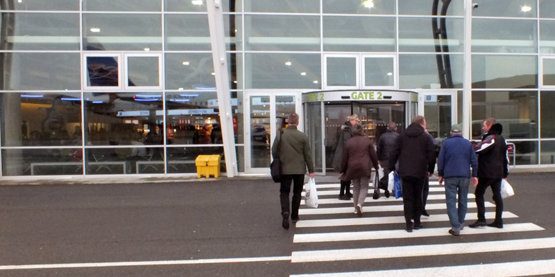 of the runway is across the street from the Flybus terminal. A half-hour slog