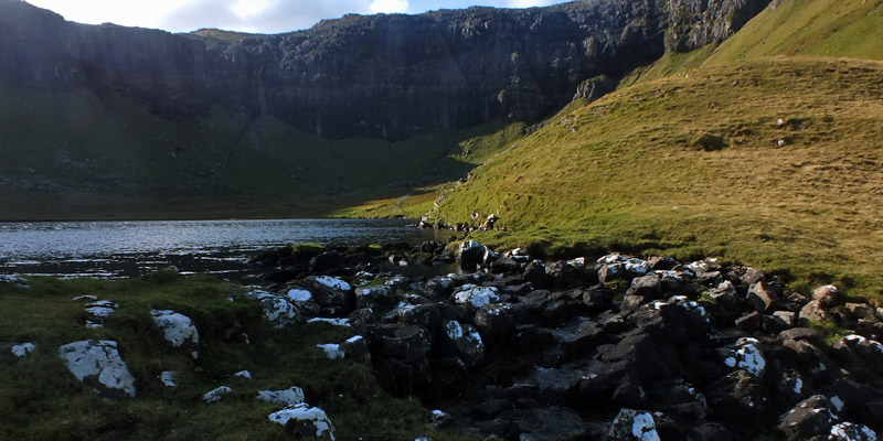 by a ring of cliffs. It is indeed a wild and pretty spot. I hang around for a while,