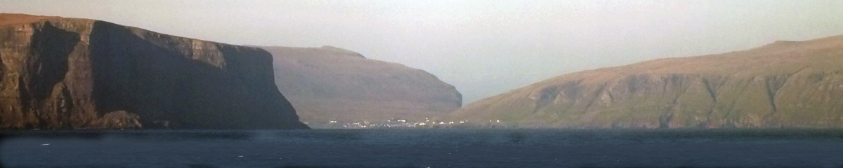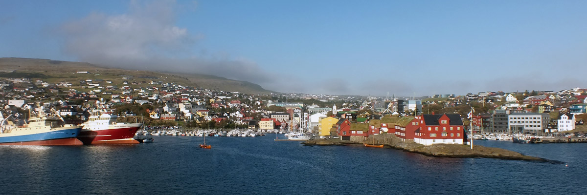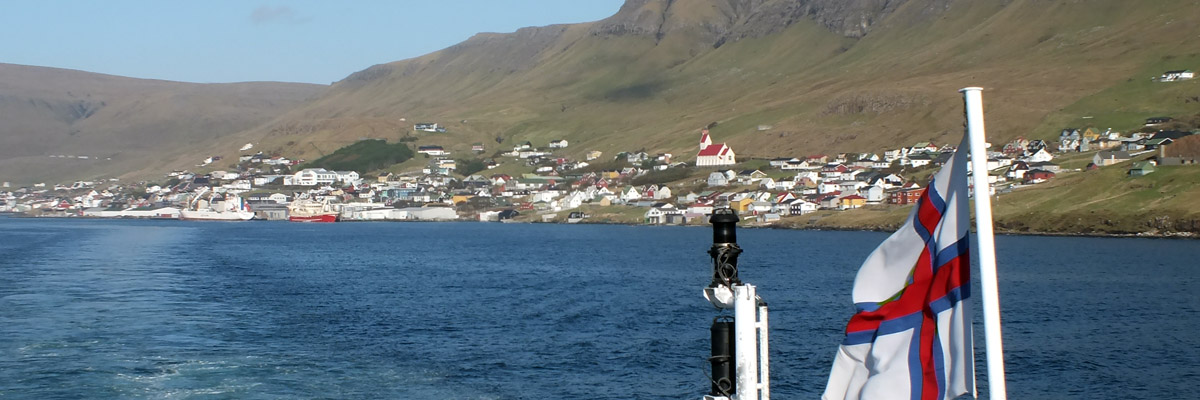 Tvøroyri across the fjord, from both the terminal and the rail of Smyril, before