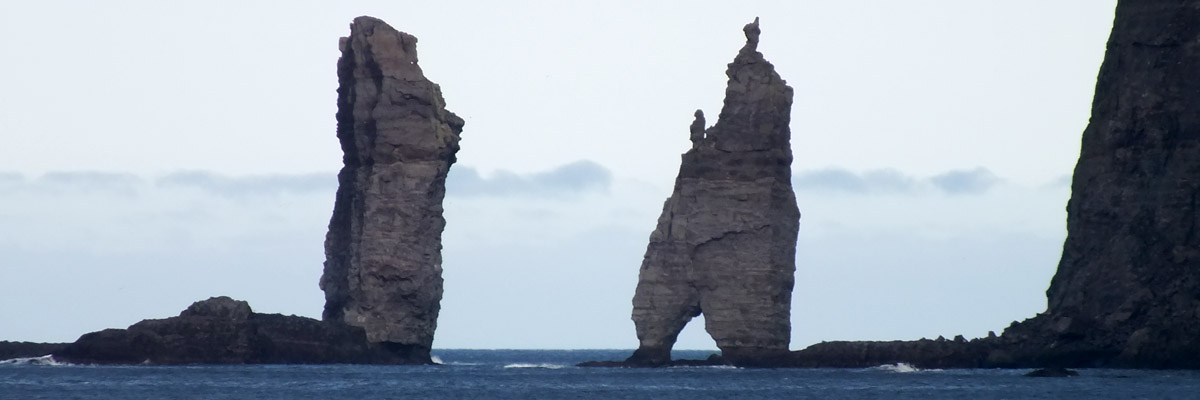 at the northern end of Eysturoy. These 70-meter pillars are said to be the