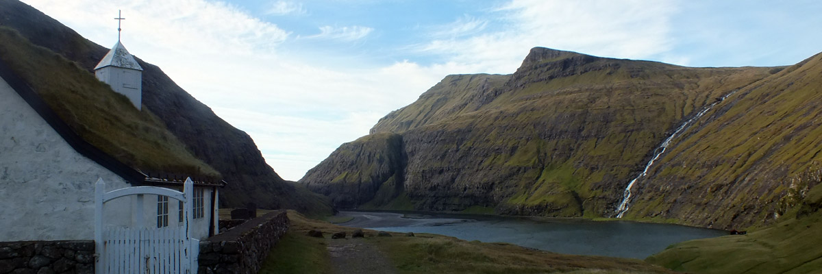 Tjørnuvík (pop 70) is a pretty village, lying at the foot of a steep bowl, at the