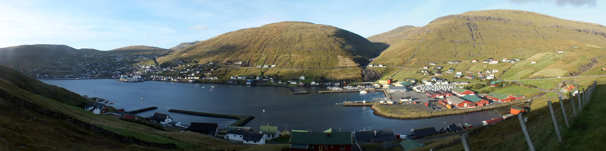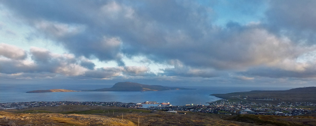 There are nice views over the harbor and the island of Nólsoy, which shelters it.