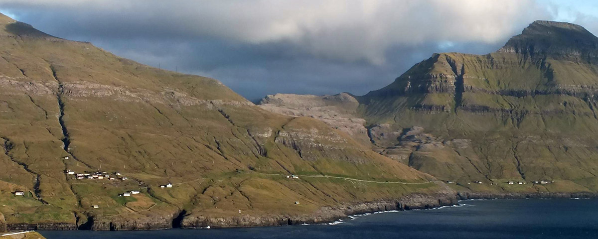 descends to Tjørnuvík. There are views across to the village of Eiði, and the