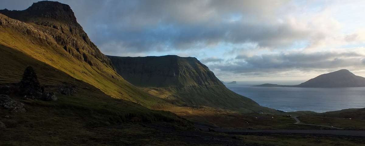 I pass by the road back to Tórshavn and drive along the strait between