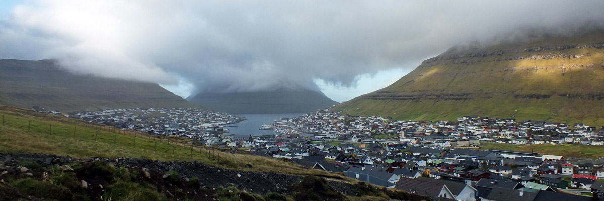 Klaksvík forms a narrow U around its fjord, with the southern tip of Kunoy