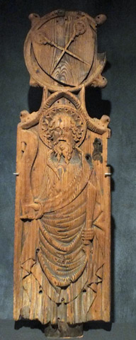 carved wooden pew ends from St Olaf's Church in Kirkjubøur.* These were