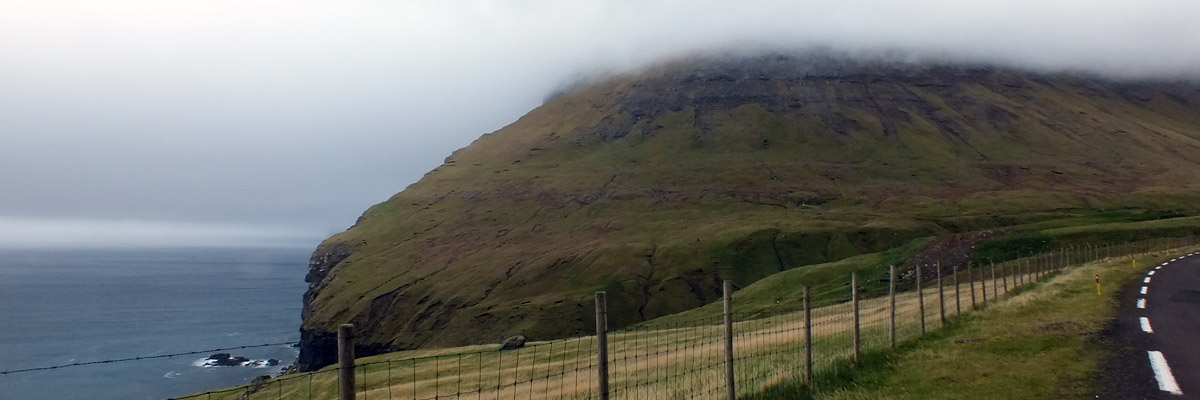 Sørvágsfjørður to the end of the road. In 2001, the road ended at the foot of a