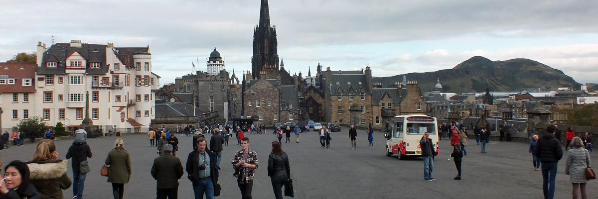 Thursday 20 October 2016--As is usual after an evening in the Bow with Willie, I had a rather fuzzy day today. Wandered up to Edinburgh Castle, where I had this view across the esplanade, down toward the Royal Mile.