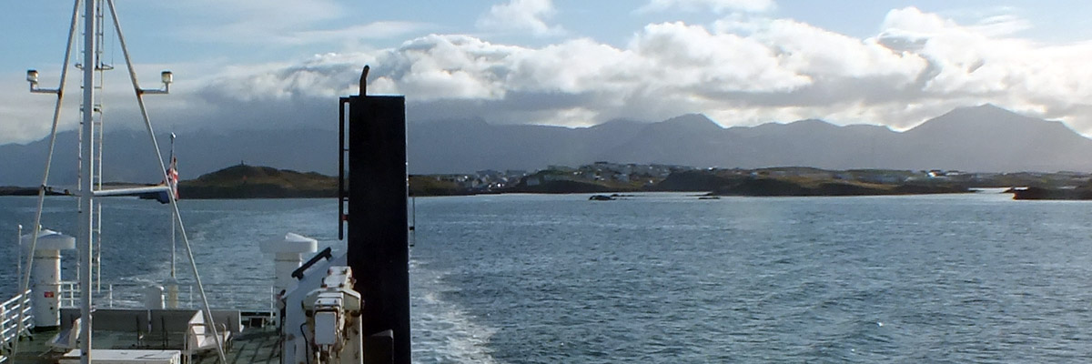 boarding the ferry Baldur for the two-and-a-half-hour sail across broad