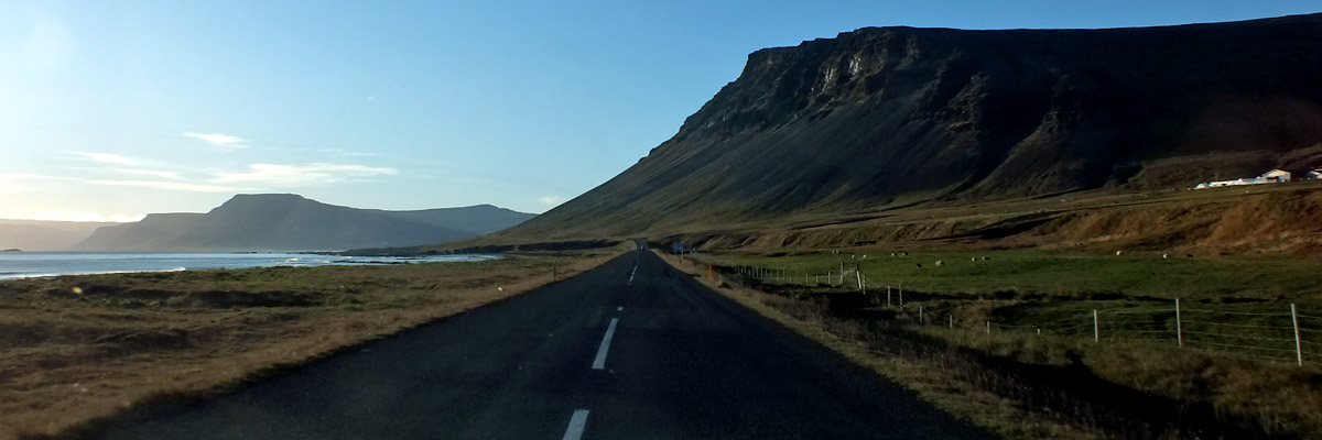 Breidafjördur to the southern shore of the Westfjords. In summer, there is a