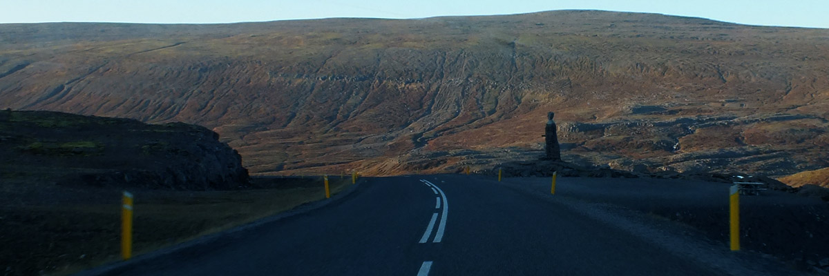 clearly. Just before the descent to the fjord, there is a peculiar monument at the
