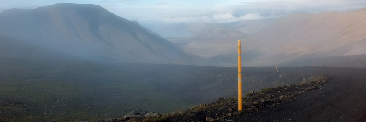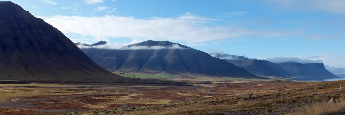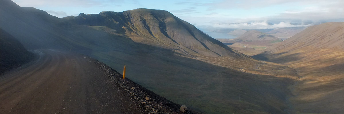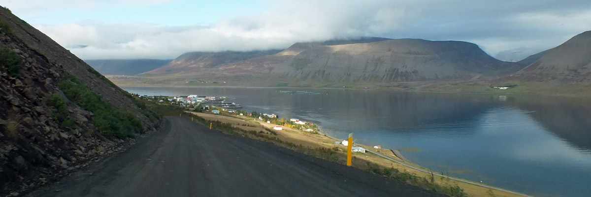 end of the fjord, then up Gemlufallsdalur and down Bjarnadalur to the head of