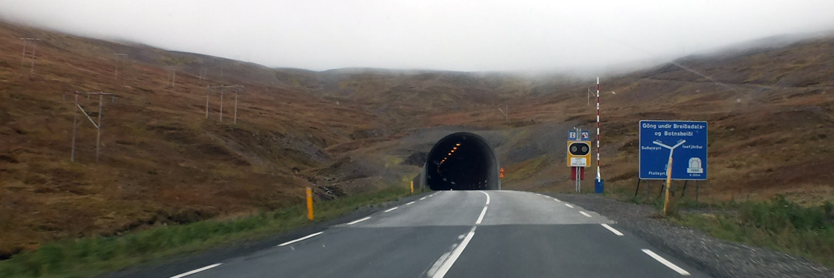 Vestfjarðagöng. Partway along, there is a junction with a side tunnel leading