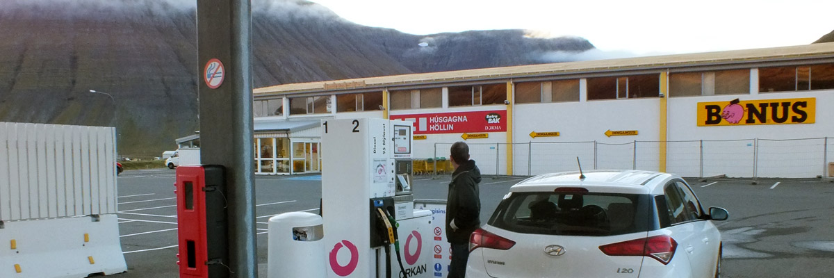 So we top up at the Bónus before leaving town. I'm expecting gasoline prices to