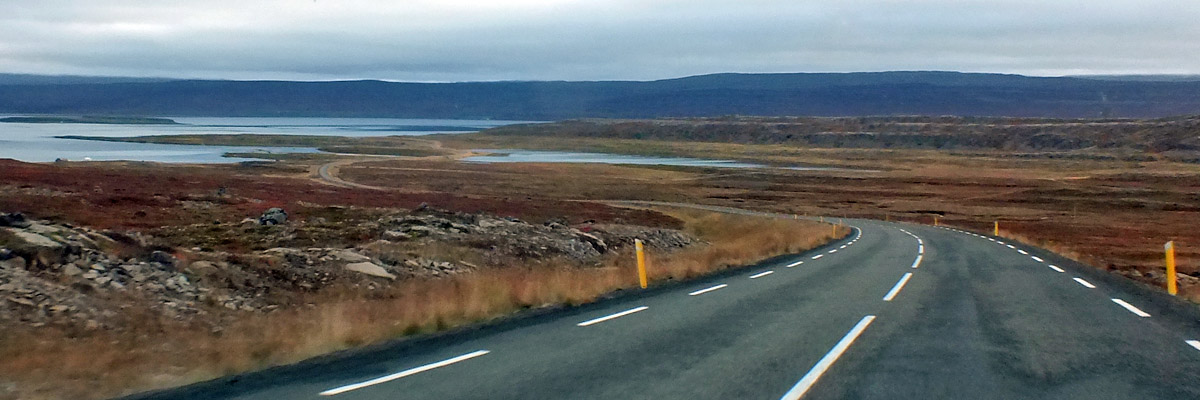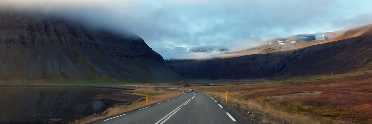 The road east winds up and down a succession of fjords--Skutulsfjörður,