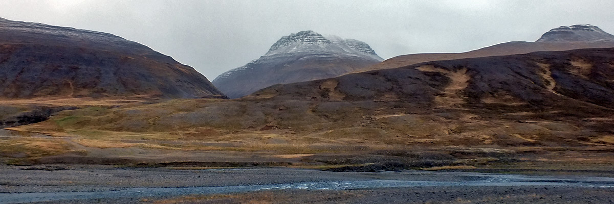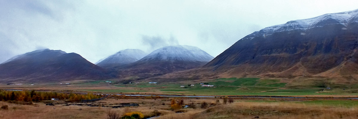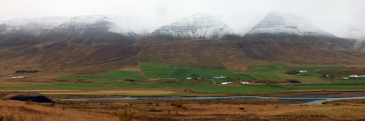 Ring Road, longest drive of our trip. It's cold this morning, with snow on the hills,
