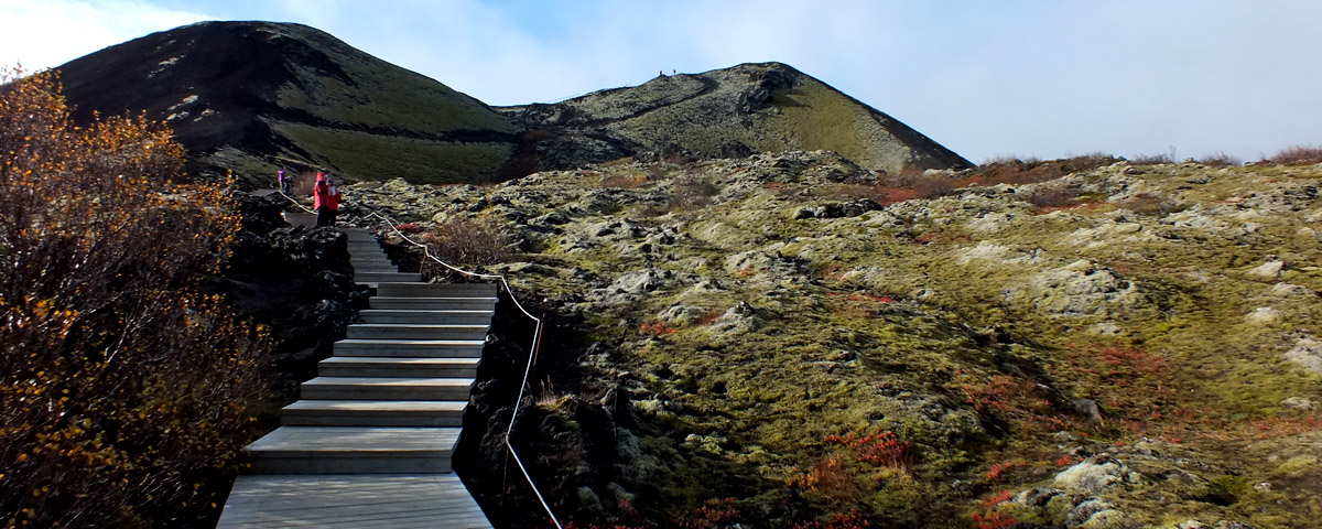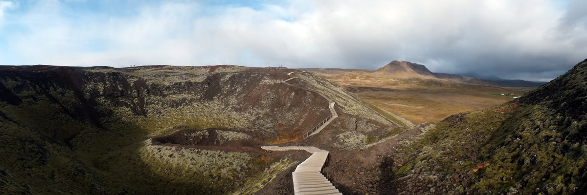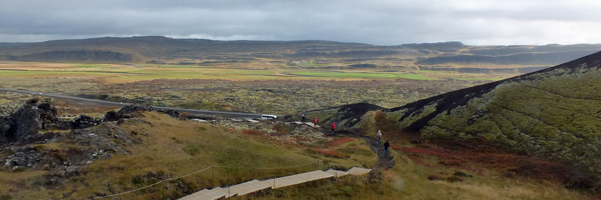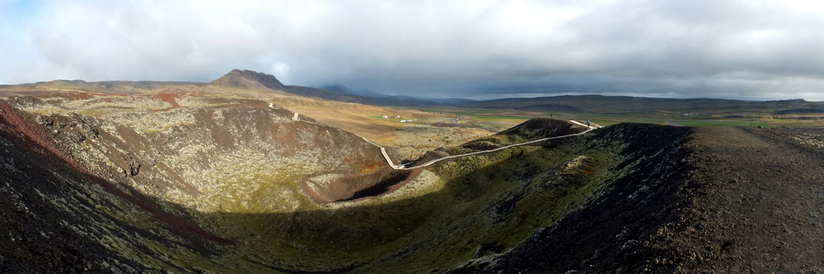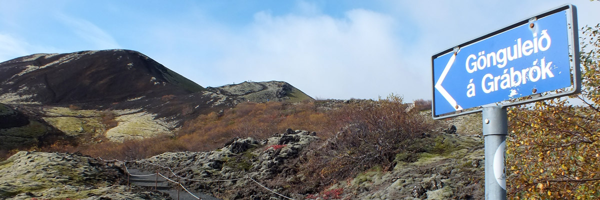 we drive west. We don't stop until we arrive at Grábrók, a volcanic crater that