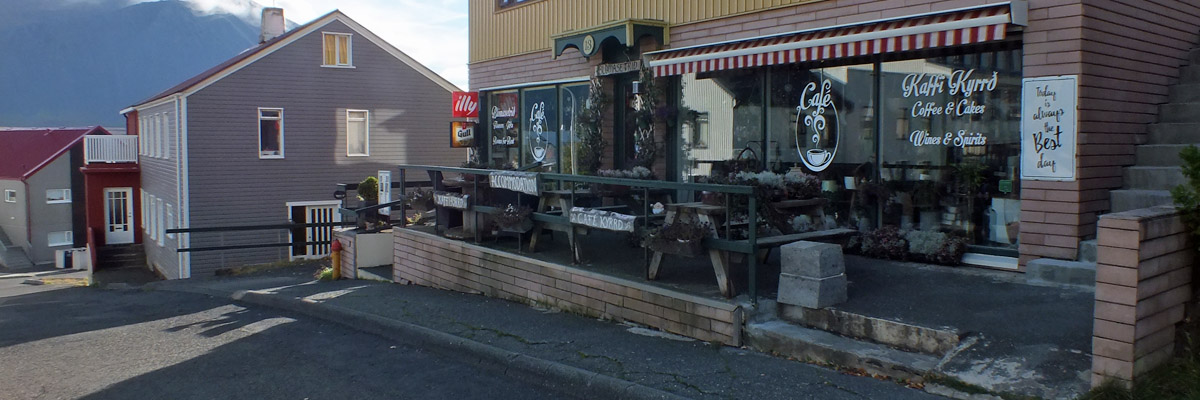 We make a coffee stop in Borgarnes. Marc tolerates these stops, I think; I like