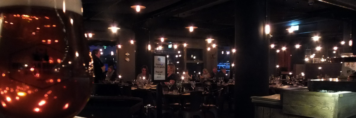 I suggest to Marc that we have a beer at Bryggjan Brugghús, the brewpub near