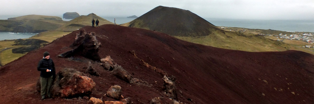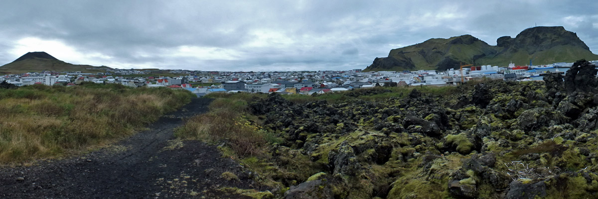 Eldfell, the volcano formed in the eruption. The surviving town is at my feet, to