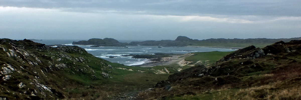 Friday 13 October 2017--The Bay at the Back of the Ocean. Our B&B overlooks the golf course/cow pasture above this western beach on Iona. We walked the island from end to end today, from Columba's Bay in the south, where the Irish saint is supposed to have landed, to the lovely beach at the north end.
